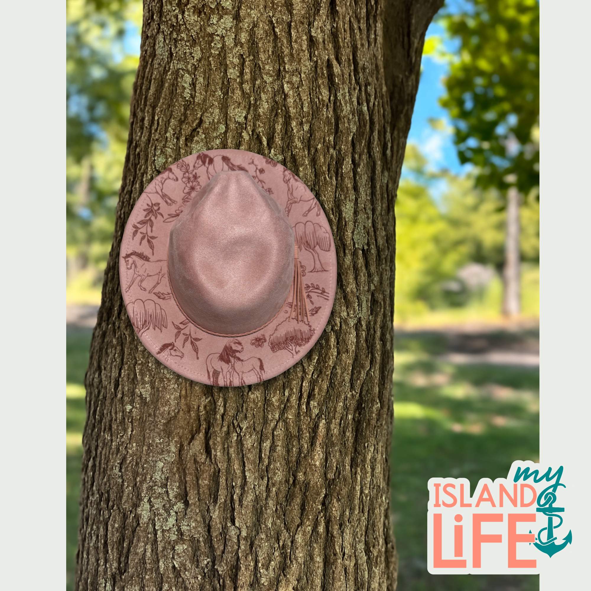 Garden Whisper Engraved Vegan Suede Hat – Wide Brim