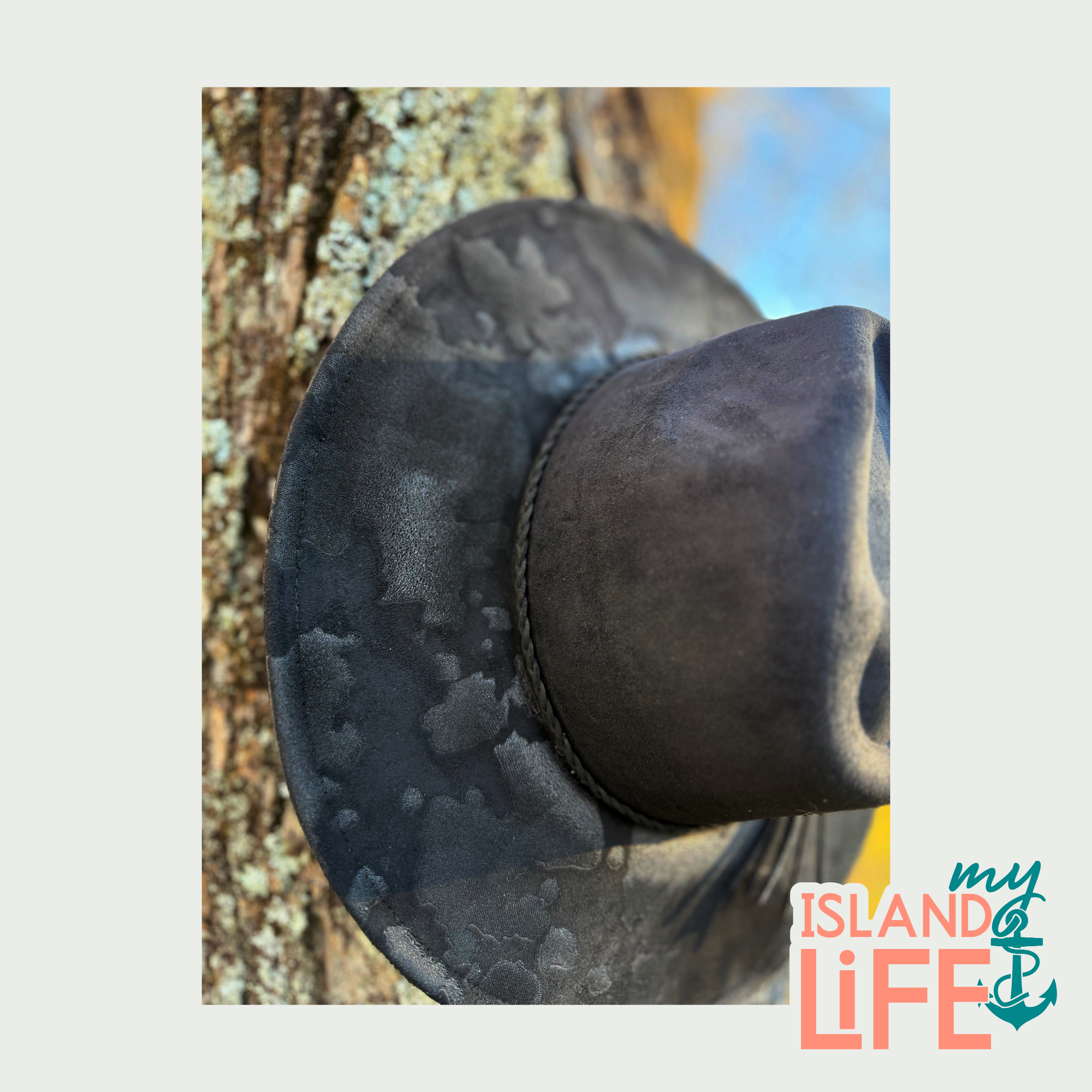 Hydrangea Hill Engraved Vegan Suede Hat – Wide Brim