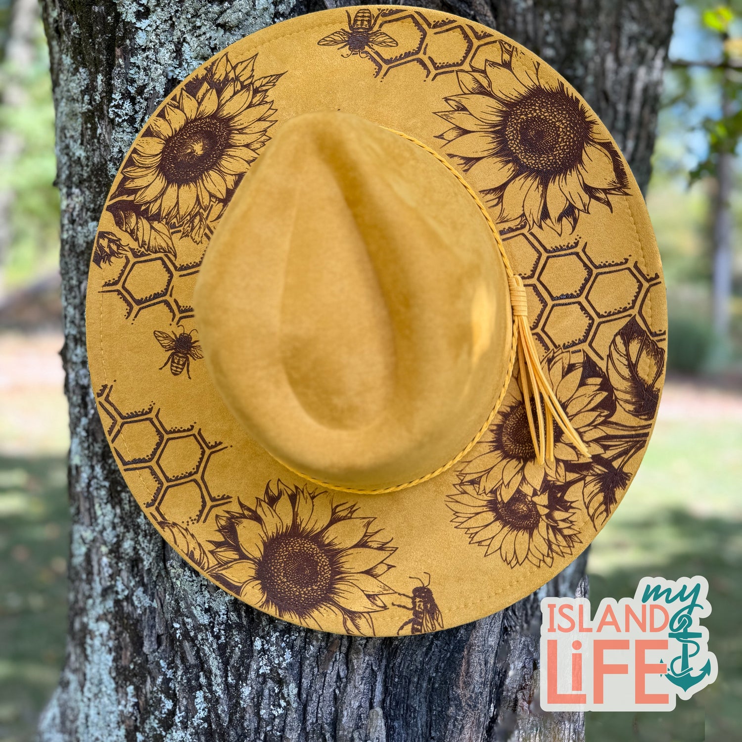 Bee Wild Engraved Vegan Suede Hat – Wide Brim