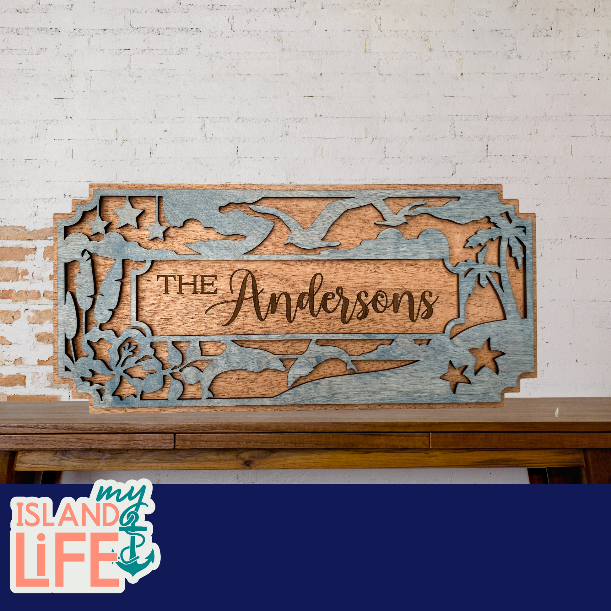 Tropical Family Name Sign – Personalized Wall Art or Celebration Calendar