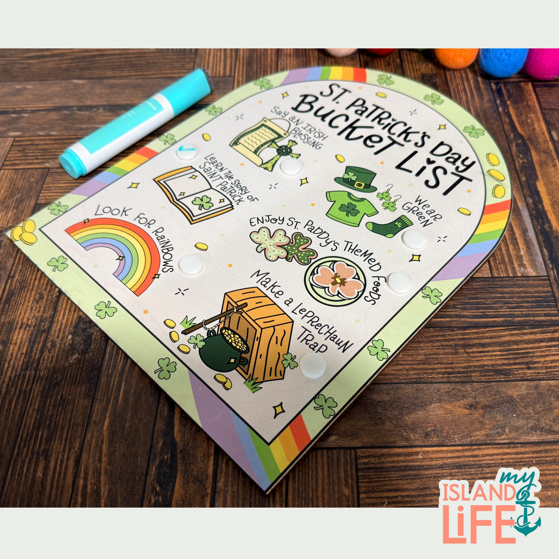 Each board is printed on maple wood and finished with removable acrylic check markers so you can mark off activities as you go — then wipe clean and use again next season.